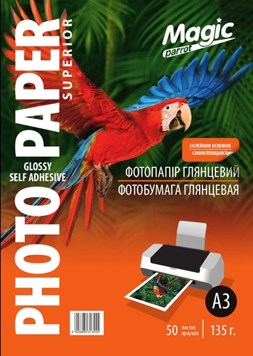 Фотобумага самоклеющаяся A3, глянцевая 135g, 50лис, Мagic