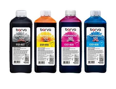 Чорнила Barva сумісні з оригінальним чорнилом Epson 101 (C13T03V14A, C13T03V24A, C13T03V34A, C13T03V44A)